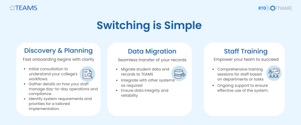 With TEAMS, AVETMISS reporting is automated, validated, and export-ready, reducing admin time and eliminating compliance headaches.